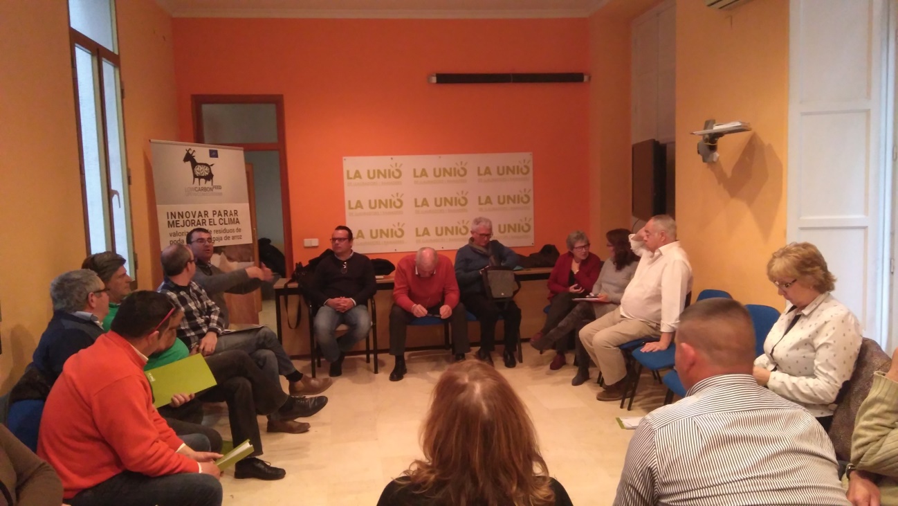 Anteriormente, La Unió ya había difundido el contenido del proyecto LCF en un curso celebrado en Líria sobre Agroecología y Cambio Climático dirigido a estudiantes de agronomía y agricultores profesionales. Aquí se explicó que LCF es un proyecto de agroecología 2.0 ya que permite el cierre de ciclos de energía y materia orgánica transformando restos de poda de cítricos y paja de arroz en un pienso de excelente calidad para cabras y otros rumiantes.